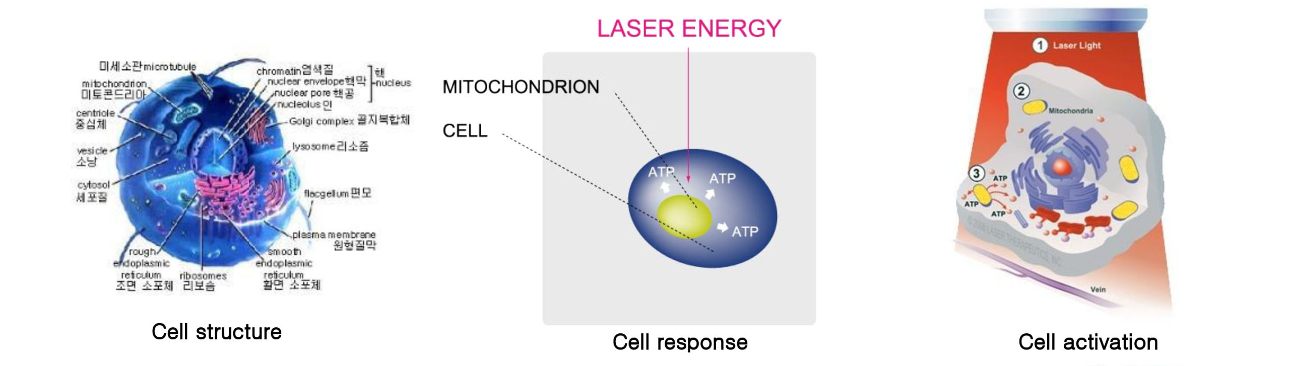 Photon of LED light source is absorbed to the chromophore in tissue and photo-acceptor and promotes the metabolic activity of the cells.