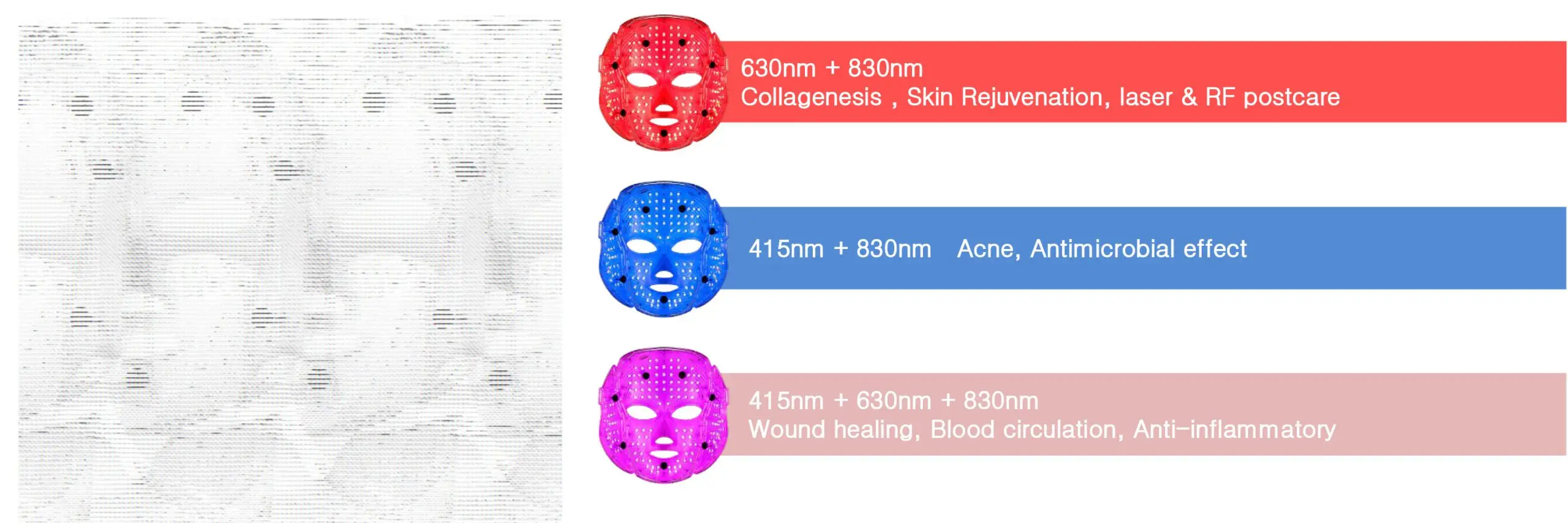 | LED Wave Length | 630nm, 415nm, 830nm |